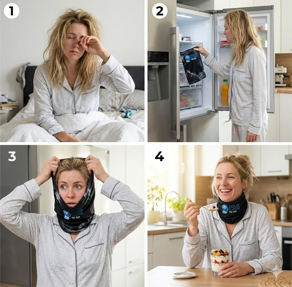 It depends on your goal. If you want a quick boost in alertness, keep the cold pack on for 30–90 seconds. If you are looking to calm down or cool off physically, you can wear it for up to 2–5 minutes.